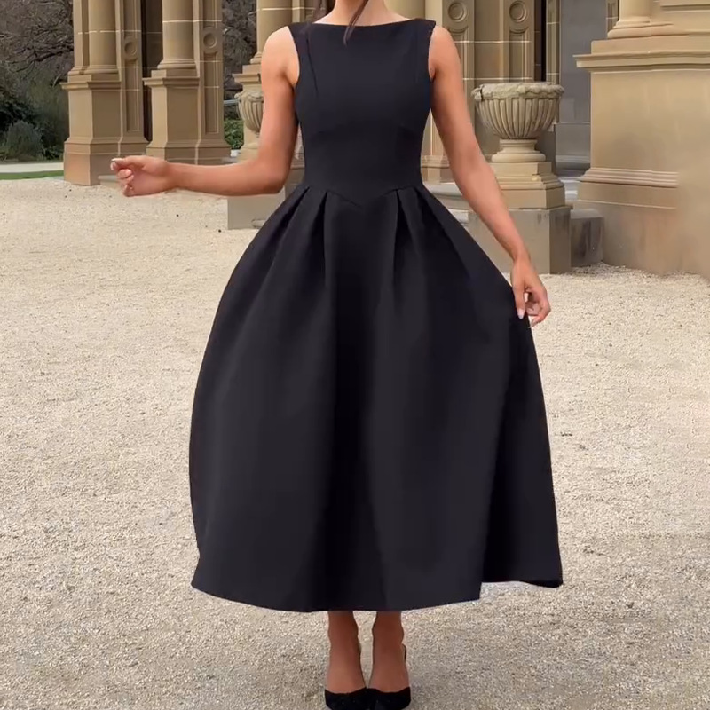 Women's Hepburn Style Solid Round-Neck Sleeveless Dress In Autumn 2024