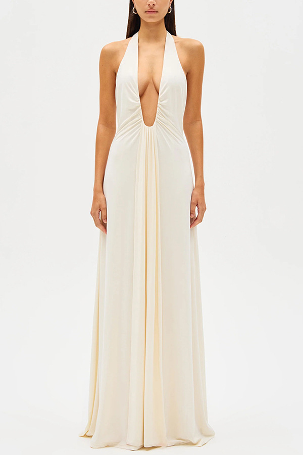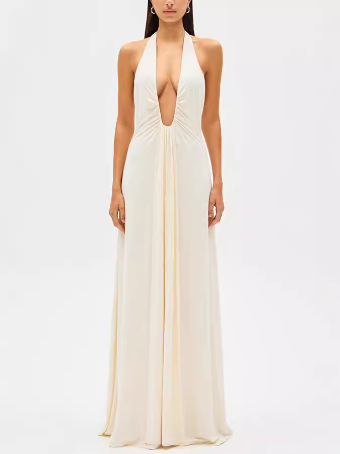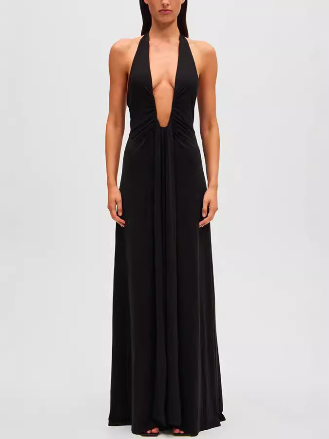 Women's Solid Color Sexy Perspective Low-Breastless Sleeveless Babes Dress Women 8075 HZ0628