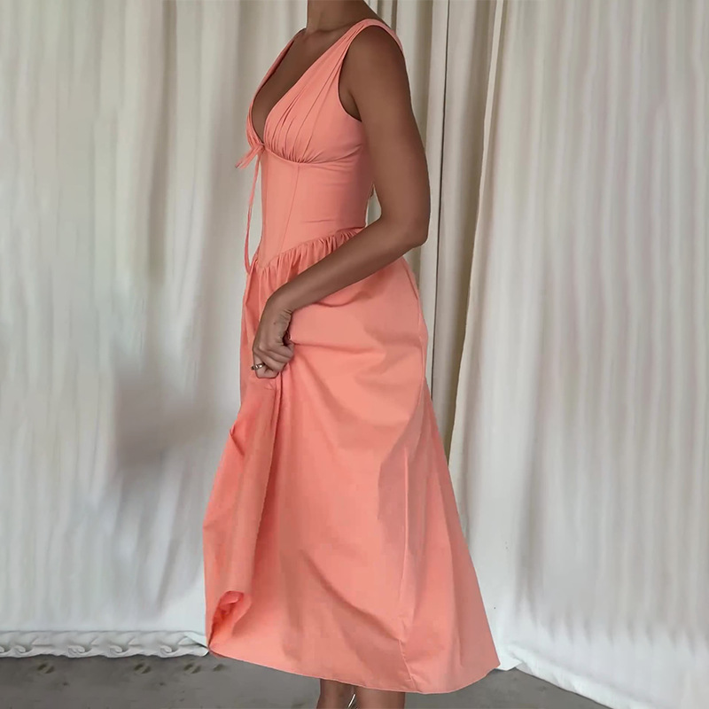Women's Summer Vneck Sleeveless High-Rise Slimming Dress Holiday Dress