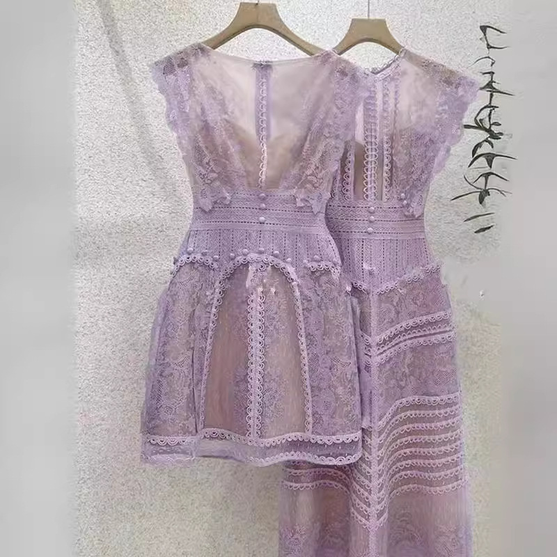 2025 Lace Yarn Embroidery Line Lace Splicing Medium Long Dress Dress 817