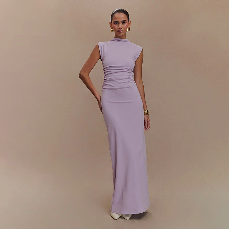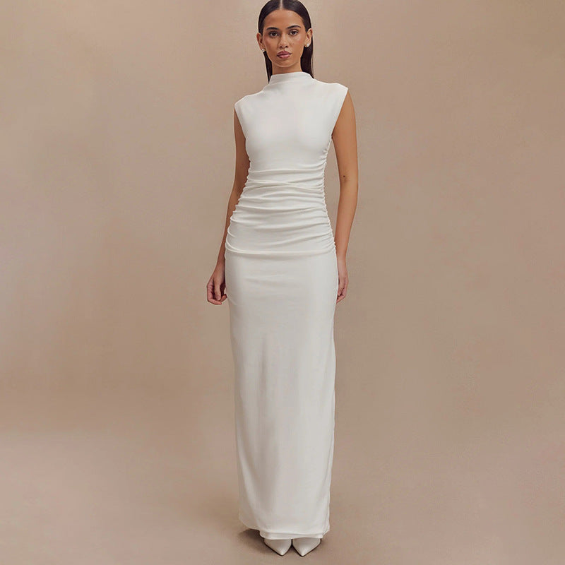 2025 New Solid Colorless Sleeveless Ruffed Zipper Bag Tug Of The Noise Dress