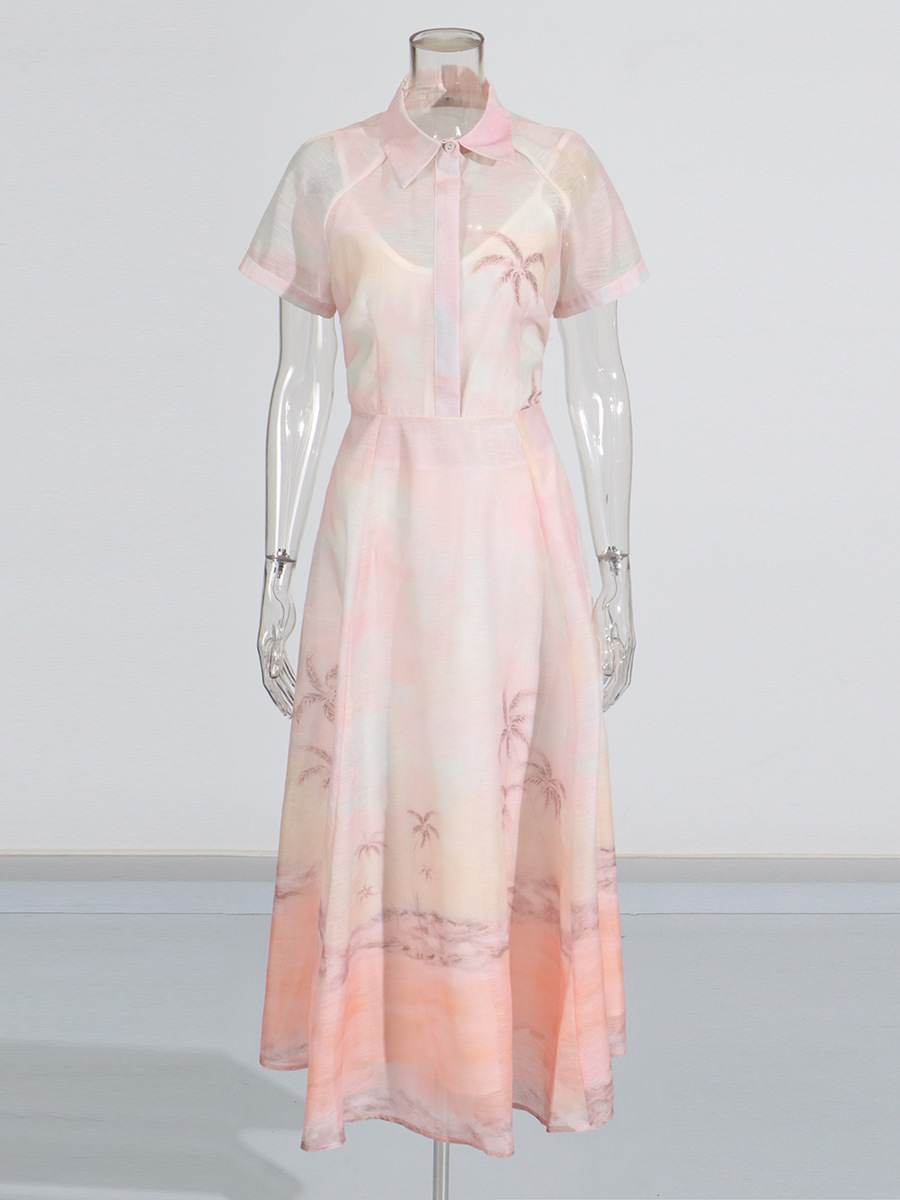 2025 Summer New V-Neck Print Short-Sleeved Shirt + High-Rise Half-Dress Suit Woman