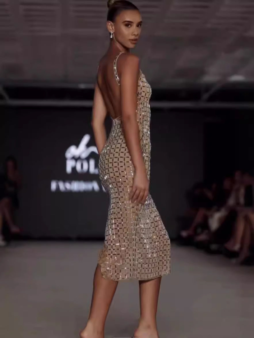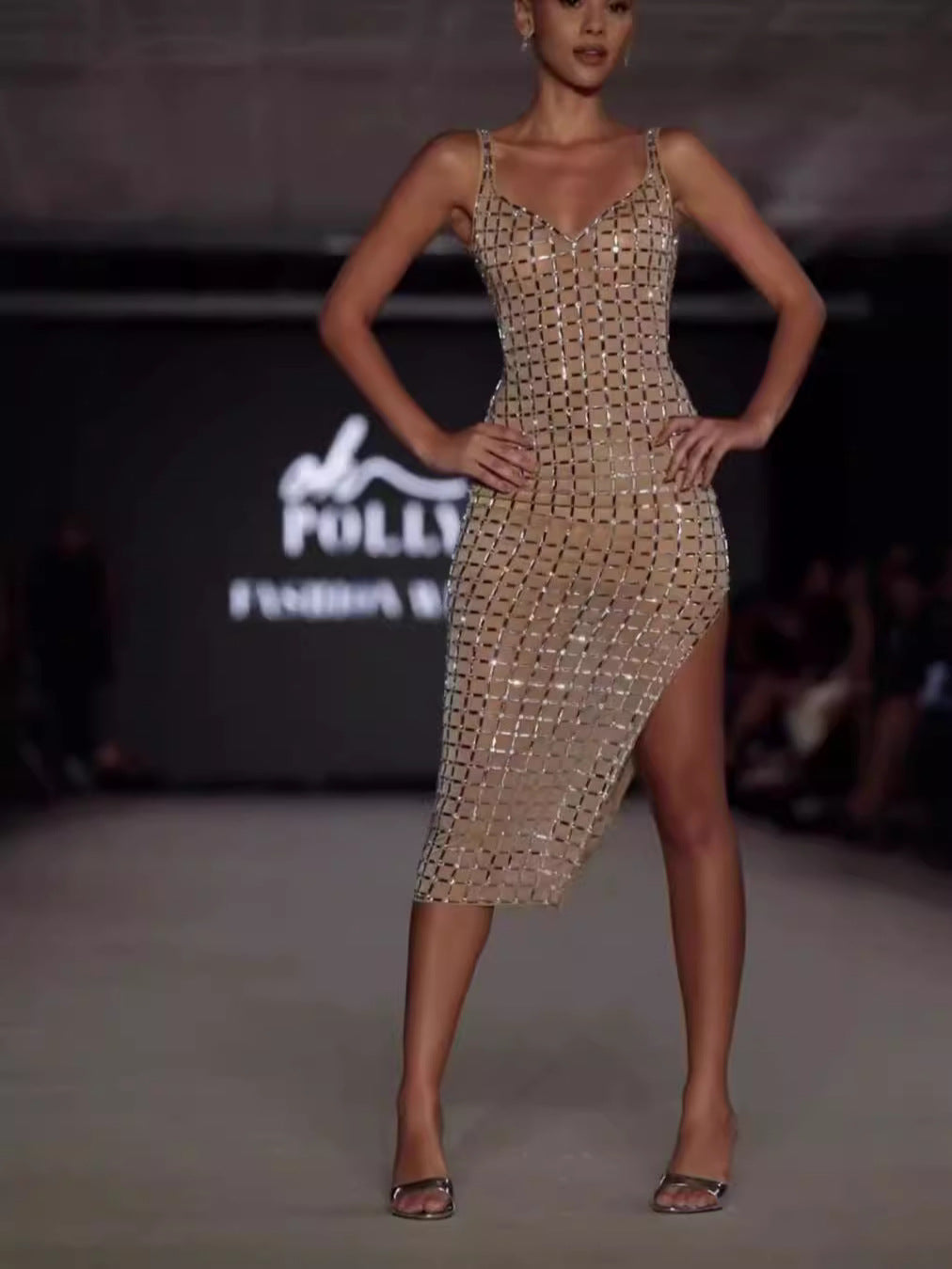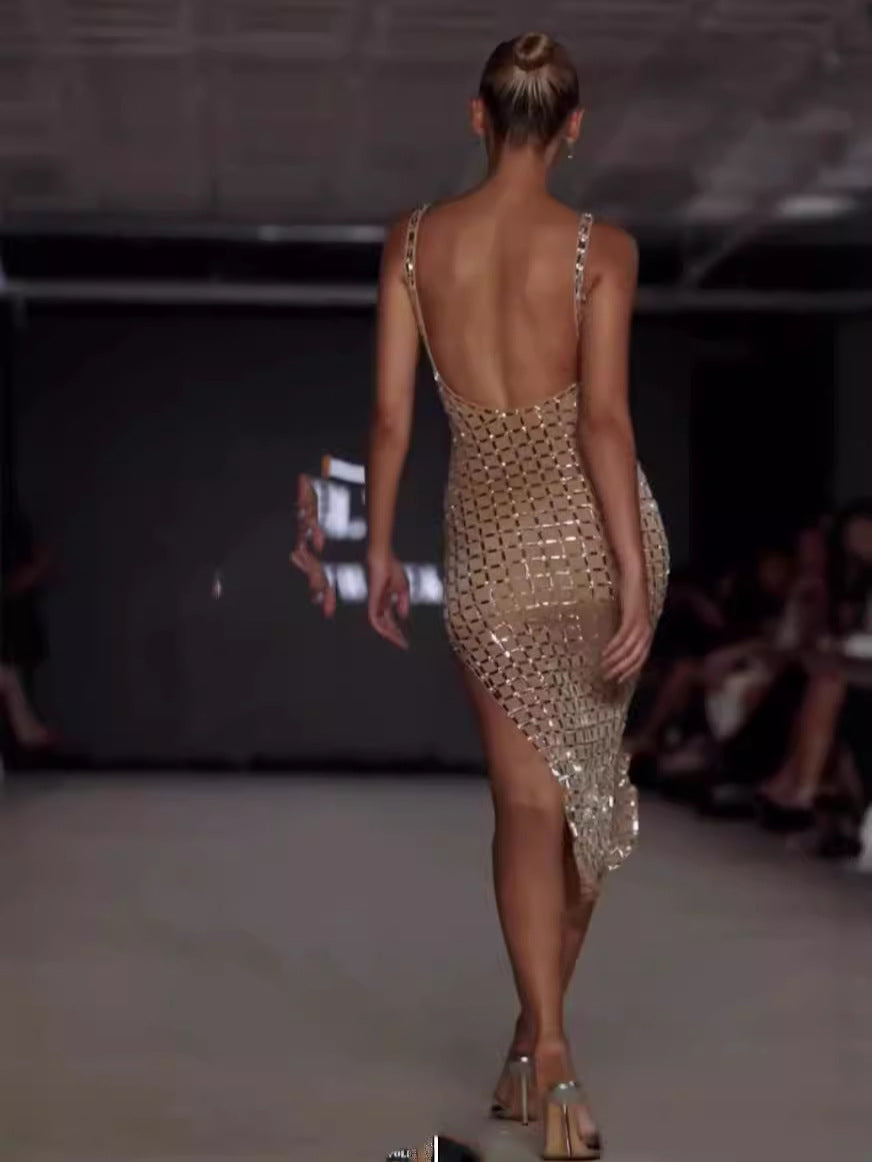 24 Years Autumn And Winter Sexy Geic V-Neck Irregularly De-Positioning Cut Hot Diamond Skirt