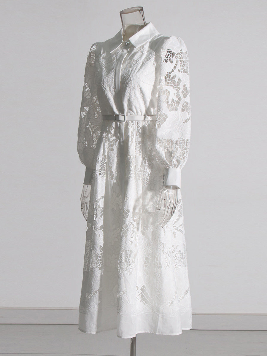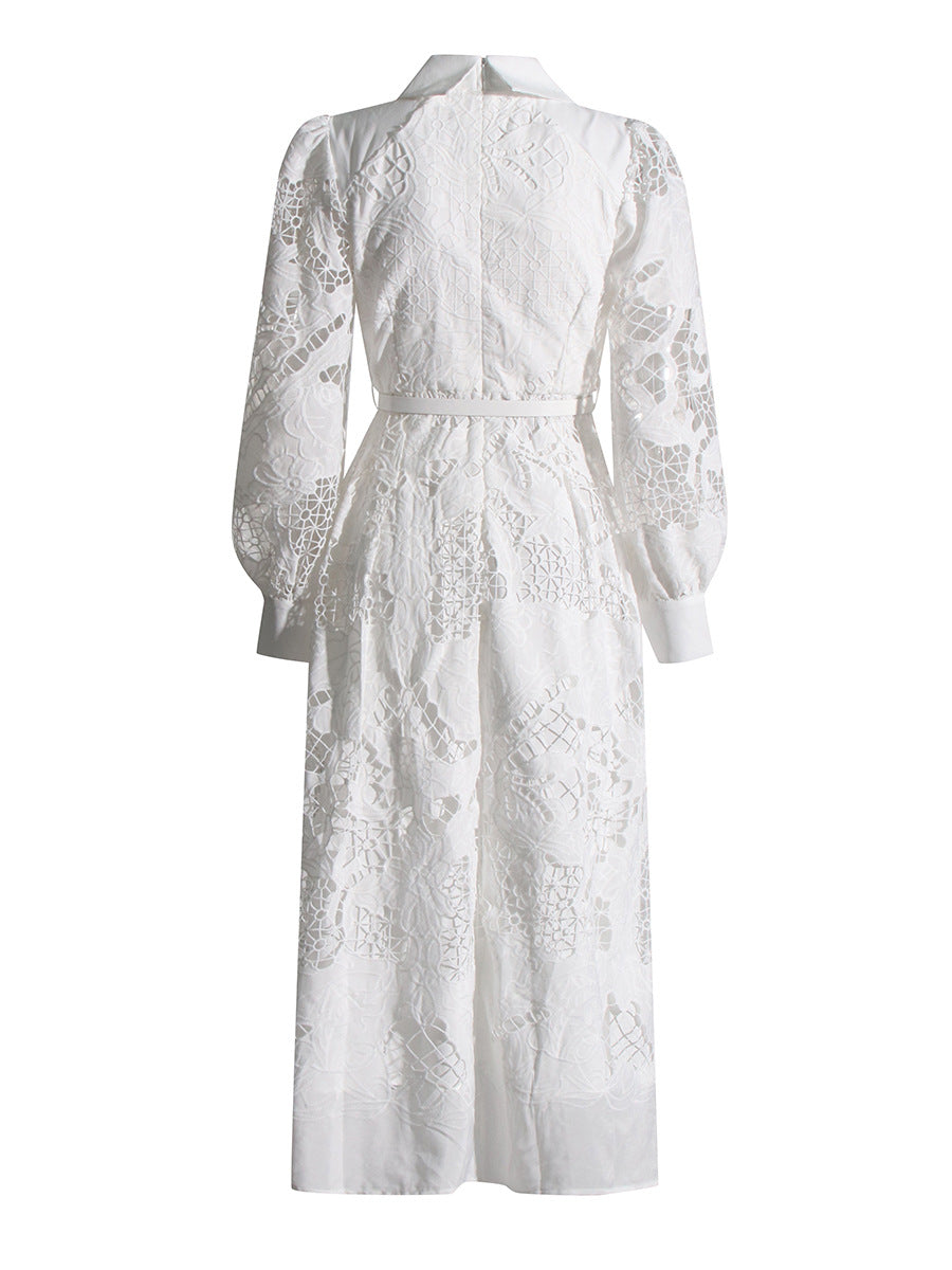 Annual Meeting Small Dress Famous Wind 2025 Summer New Collar Long Sleeves Waist Design Embroidered Women's Dress