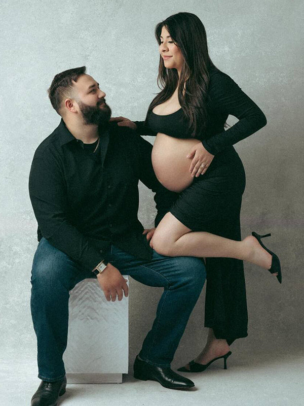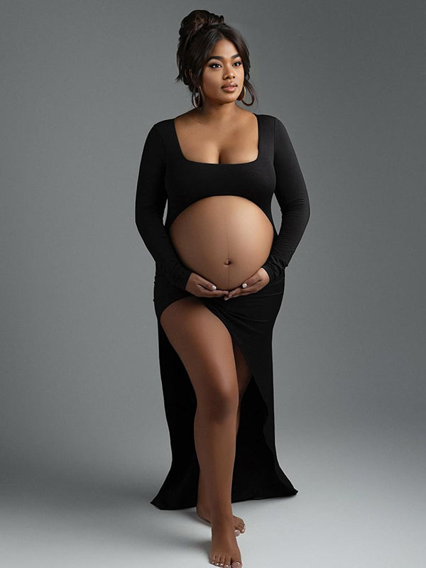 Black Ruffle Cut Out Crop Side Slit Irregular Bodycon Photoshoot Maternity Maxi Dress Maternity