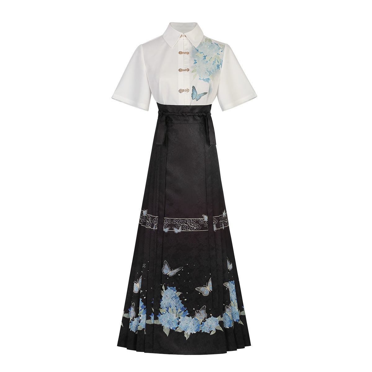 Design Fantasy Night Butterfly Chinese Style Improvement Han Elements Female Shirt Horse Face Dress Set 9081