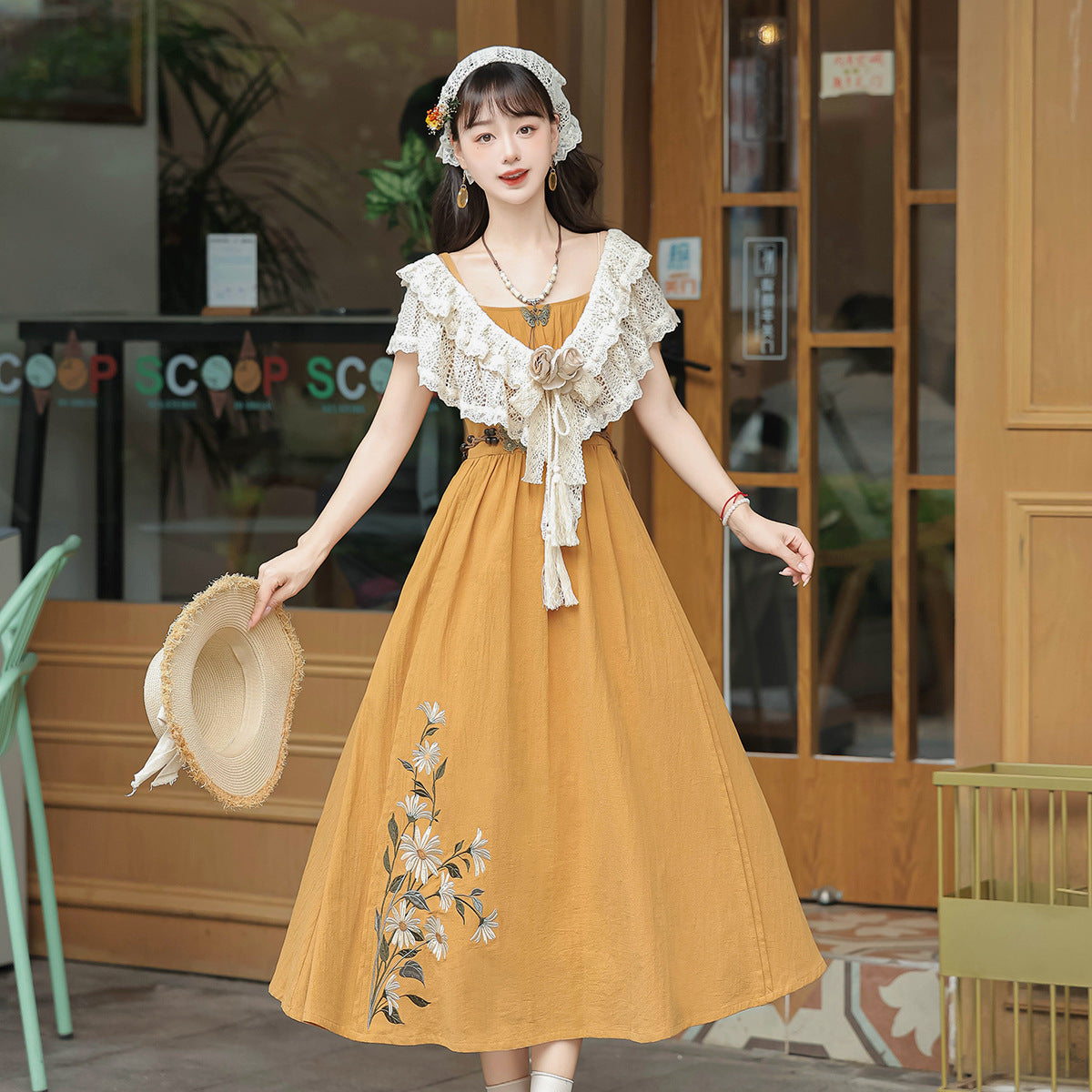 Design Until Dusk Chinese Style Improved Han Elements Of Women's Shawl Sling Skirt Suit 9217