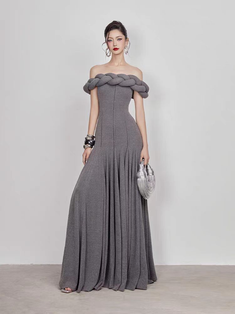 Dress 2025 Summer Vietnam Design Feeling Sesame Flowers Shoulder Thin Knitted Dress Dress