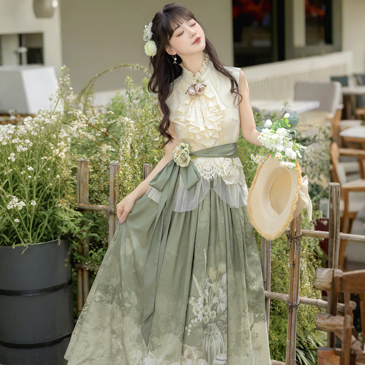 Early Morning Time Hanfu Women's Chinese Style Improve The Chinese Elements Of The New Chinese Top Skirt Dress Set 9548