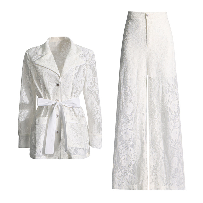 Elegant Commuter Style Suit Women's New Spring 2025 With Lace Horn Pants Two-Piece