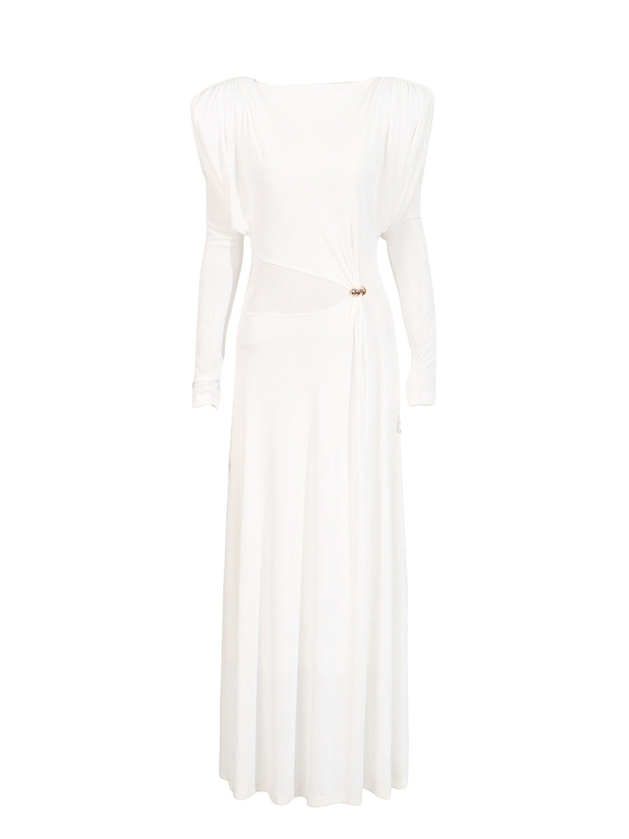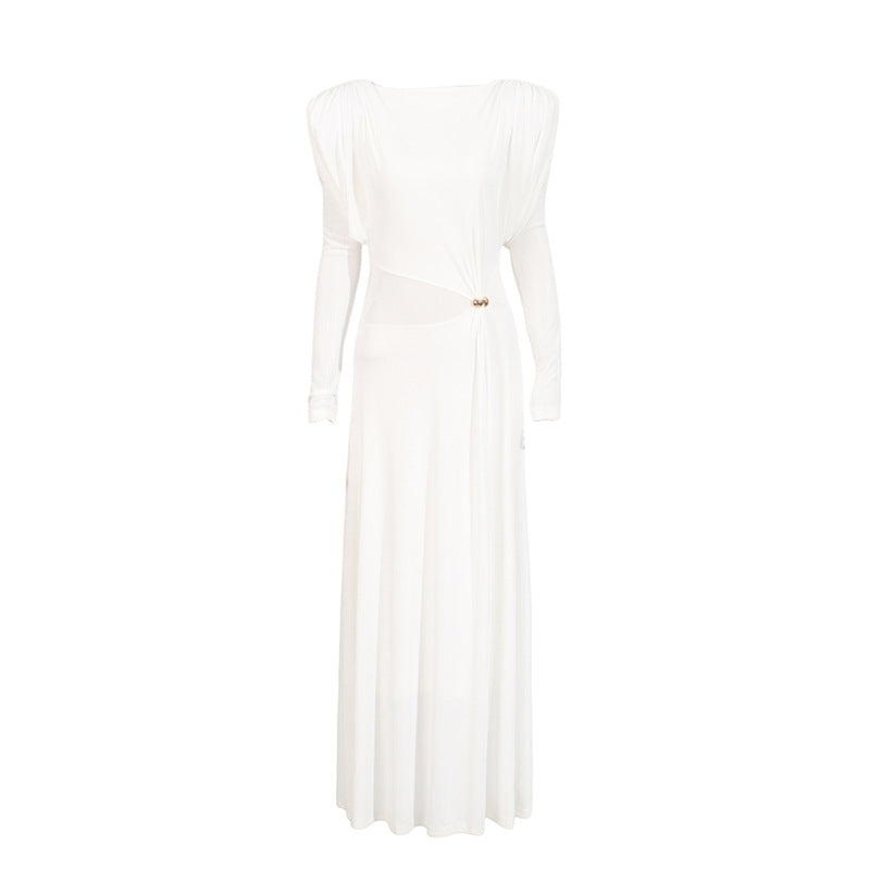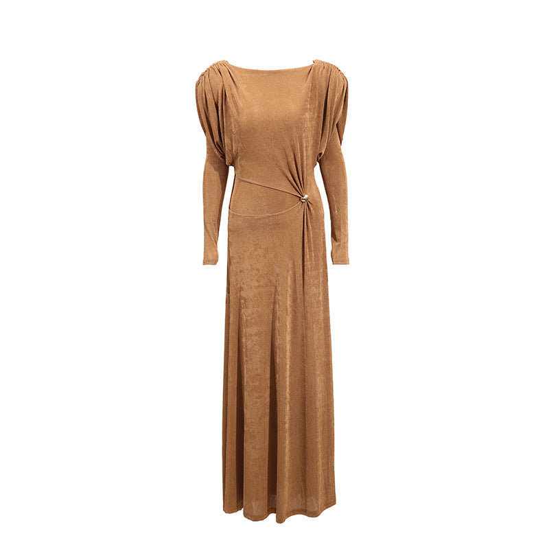 Elegant High-End Dress Dress 2025 Summer New Round Collar Kinestic Body To Collect Waist Long Dress Dress Woman