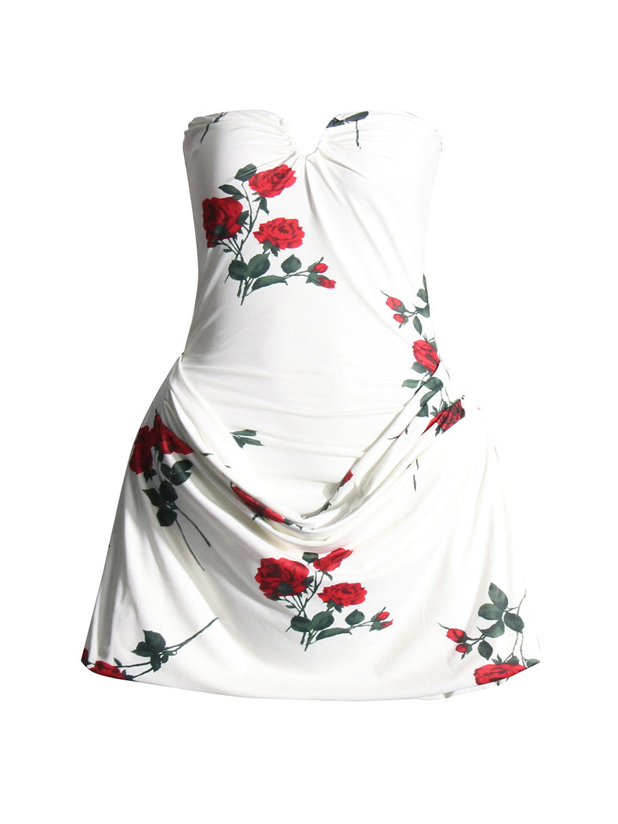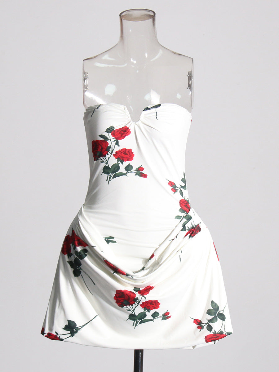Famous Style Thoracic Dress Women's Dress 2025 Spring New Sexy Body-In-Print Fold Design Dress