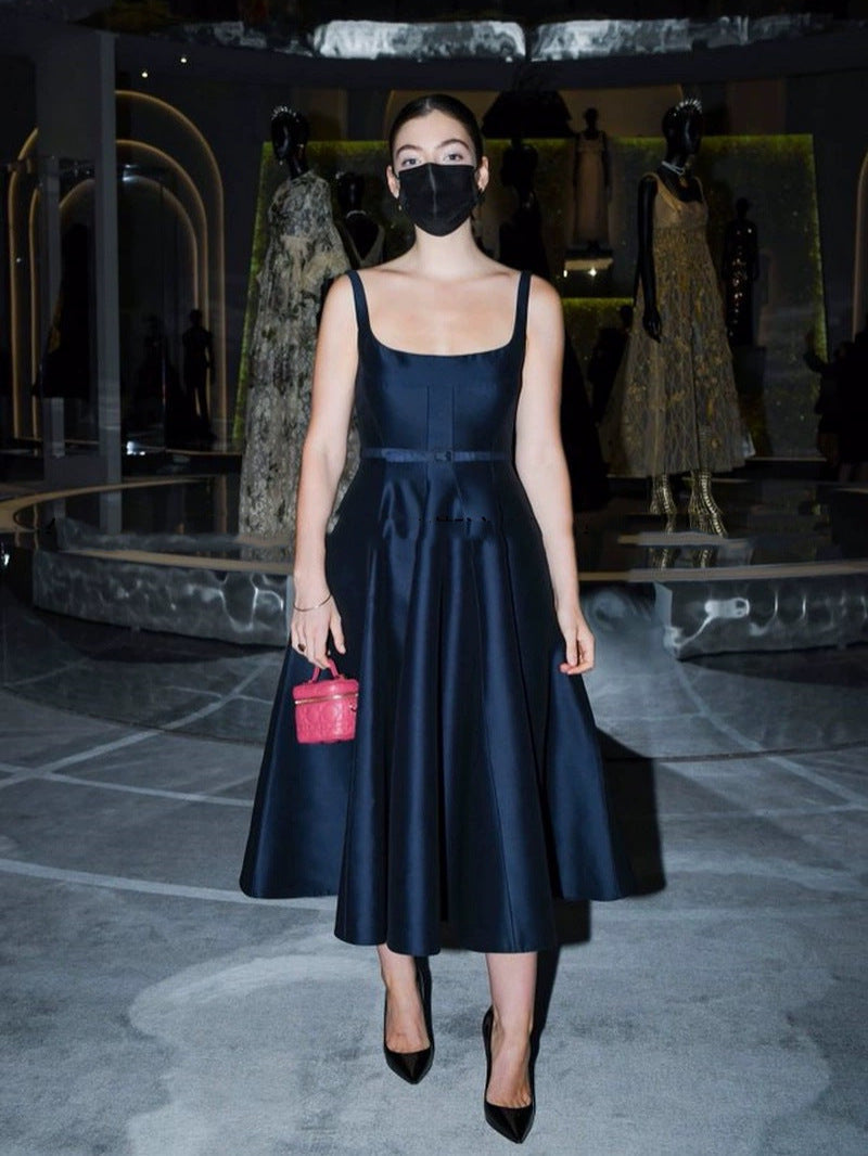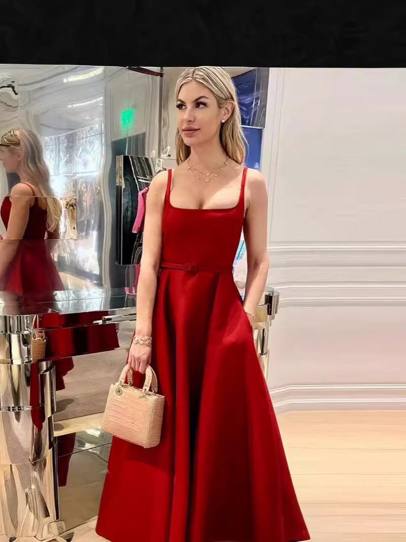 Fashion Goddess Temperament Sexy Sling Square Straight Color Swing Hepburn Dress Dress