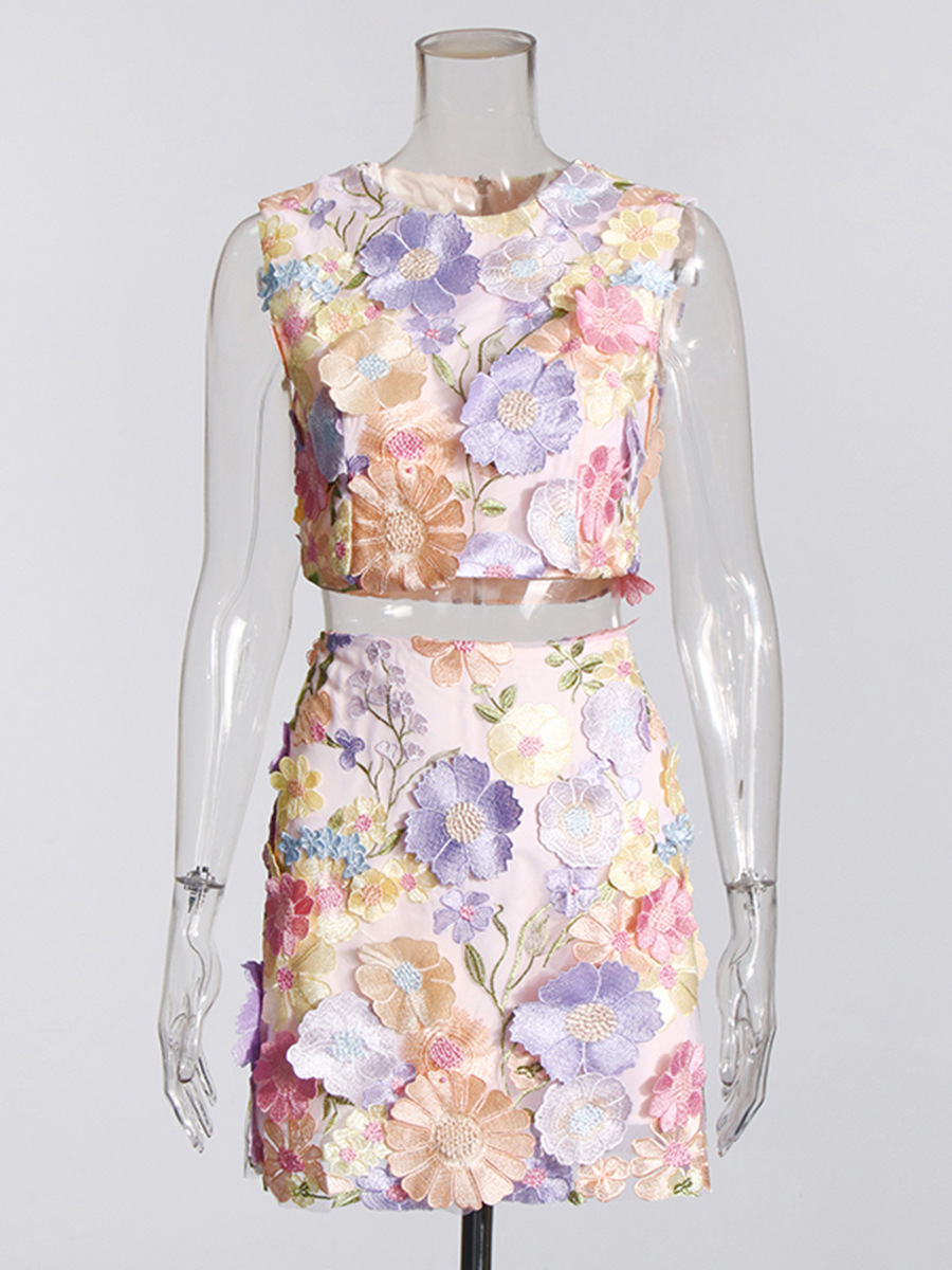 Flowers Retro Pastoral Set 2025 Spring New Round-Neck Sleeveless Top High Waist Short Skirt