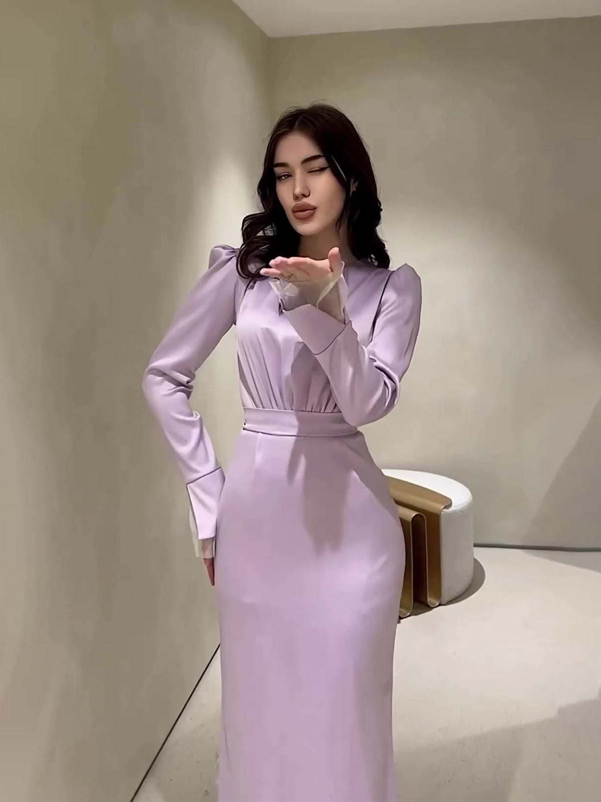 Folded And Folded In The Autumn Of 2025, The Lanky Long-Sleeved French Court Dress Woman