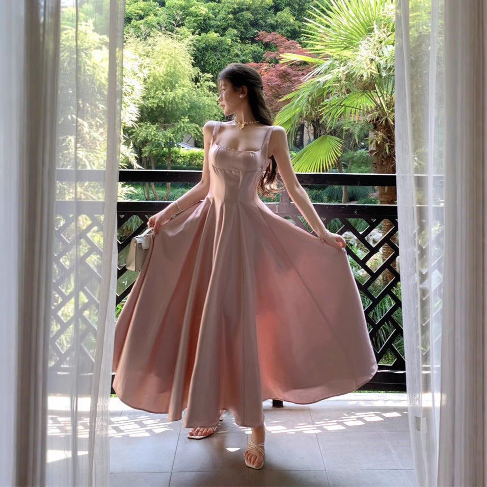 French Pink Fading Dress With Sling Dress Birthday Dress Big Swing Pony Dress Woman