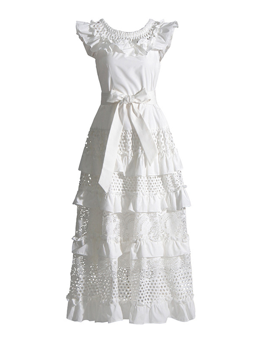 Holiday Style Dress 2025 Spring New Word Shoulder Tie With Thin Embroidery Temperament Fairy Dress