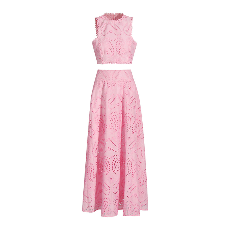 Holiday Wind 2025 New Round Collarless Bare Waist Vest High Waist Half-Dress Embroidered Two Sets Of Women