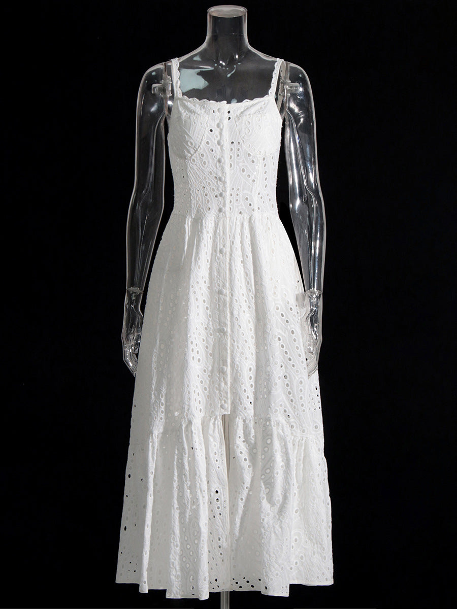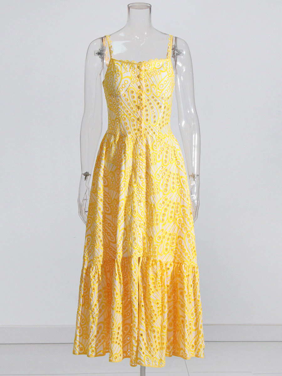 New Blue Personalized Print Sexy Breast Sling Sling Sling Belts With Thin Temperament Single-Breasted Hollow Dress
