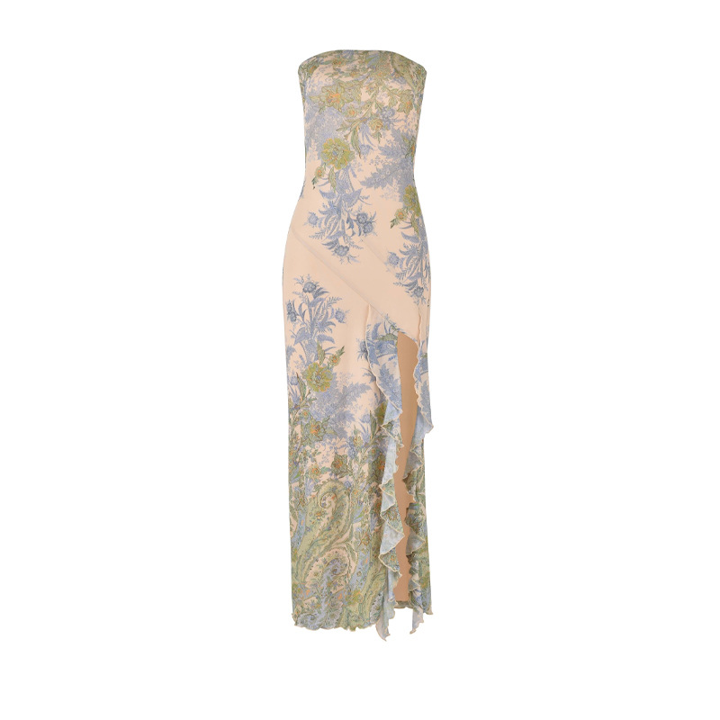 New Holiday Style Printed Floral Dress Open Long Dress Hot Girl Breast Skirt HZ0628