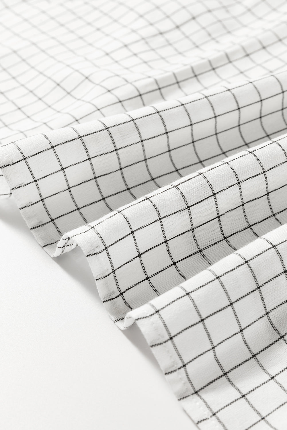Plaid Notched Balloon Sleeve Mini Dress DJPT