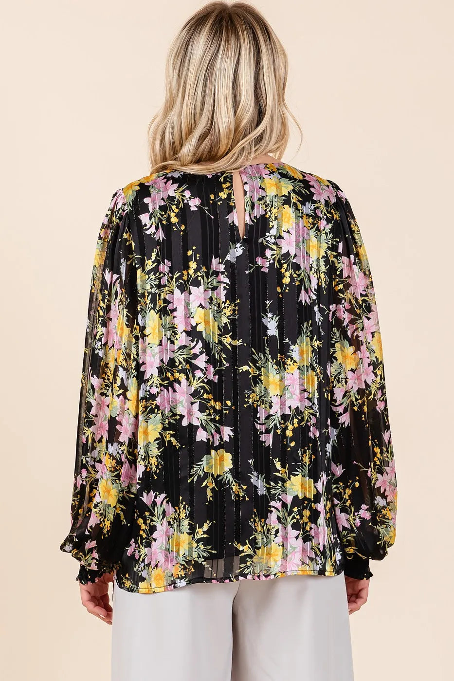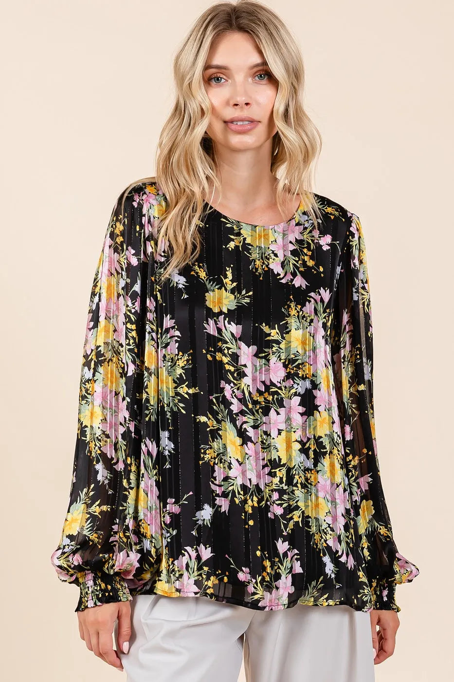 Satin Gold Lurex Striped Long Sleeve Chiffon Top DJPT