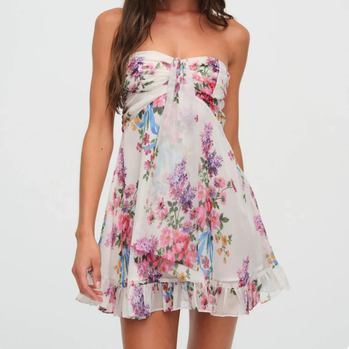 Sexy French Print Translucent Floral Wrapping Thoracic A-Skirt Miniskirt HZ0628
