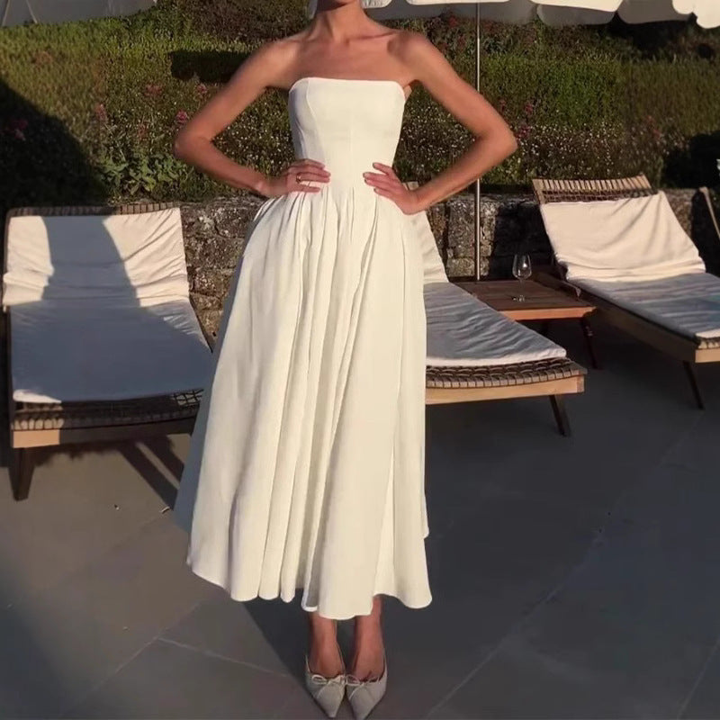 Sexy Women's Summer Wearing A Fish Bone Thoracic Dress Pure Style Hot Girl Repair In The Back Of The Long Dress HZ0628