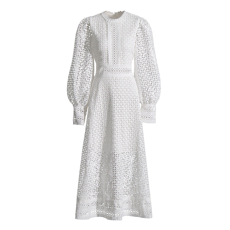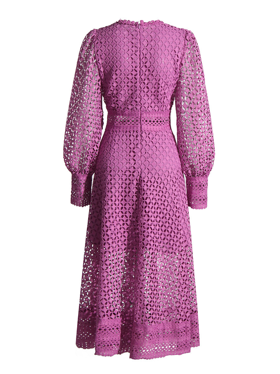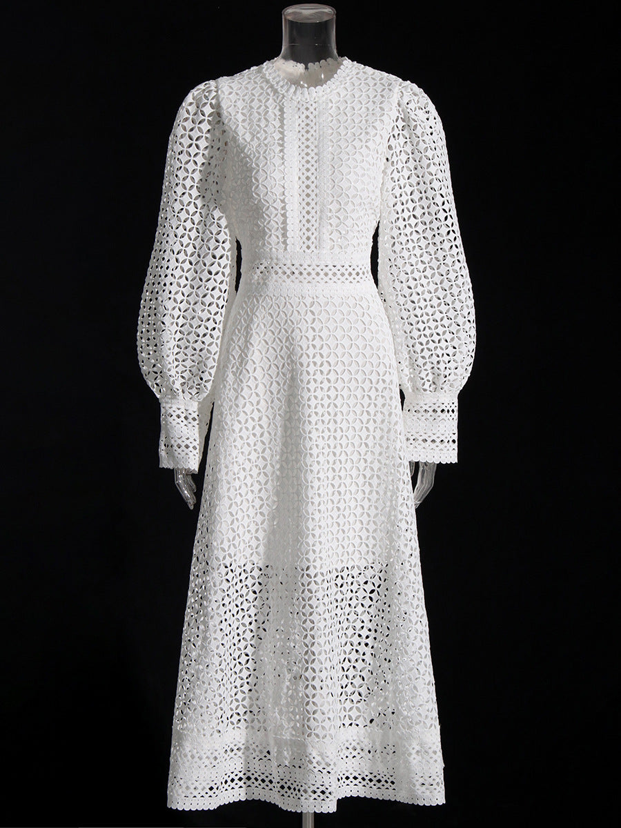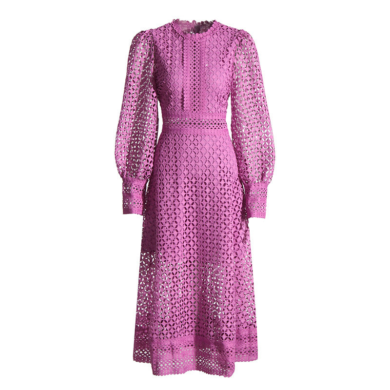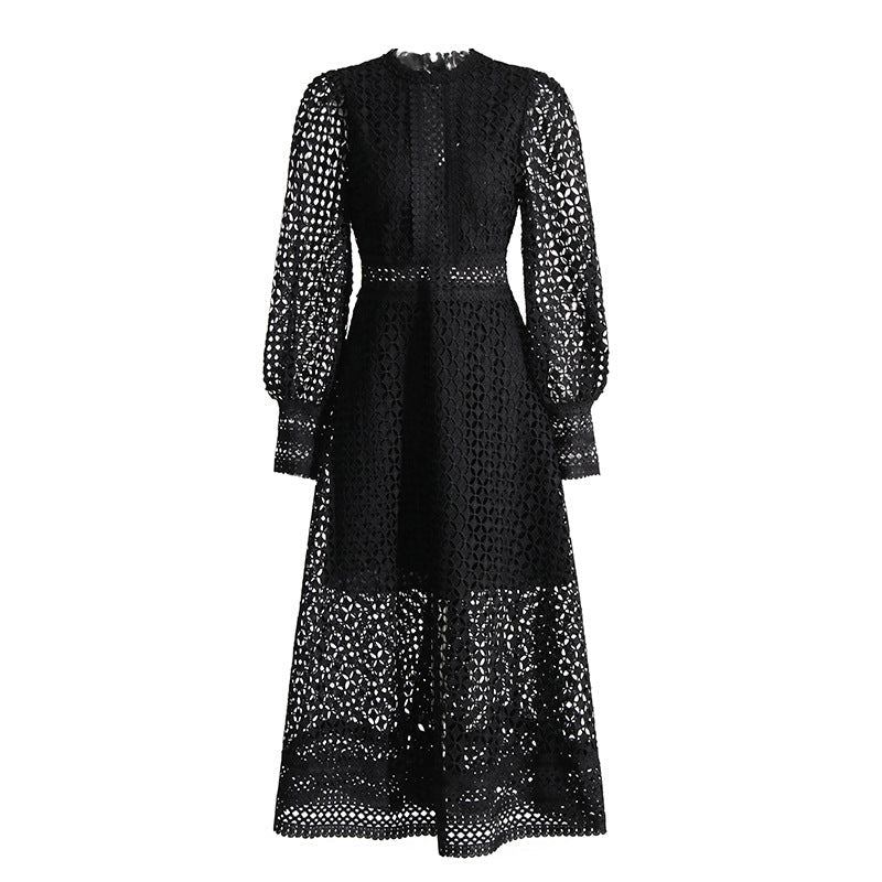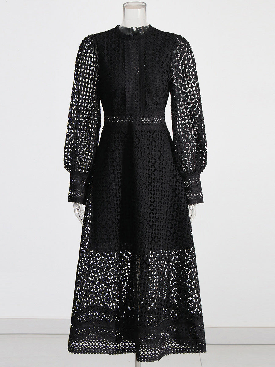 Shooting Autumn New High-End Water-Soluble Lace Dress Heavy Industry Splicing Lace Women's Lantern Sleeve Dress
