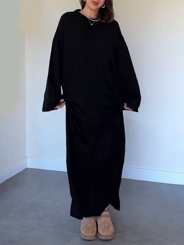 Solid-Colored Loose Knee Collar Long Knitted Dress In Autumn 2024