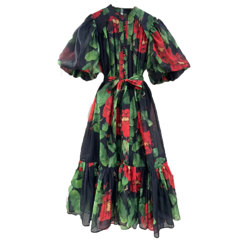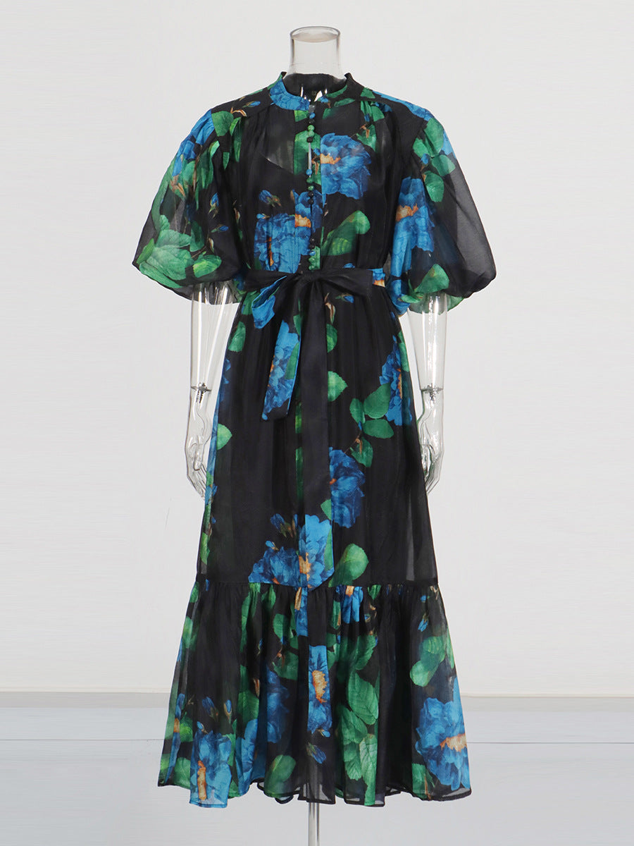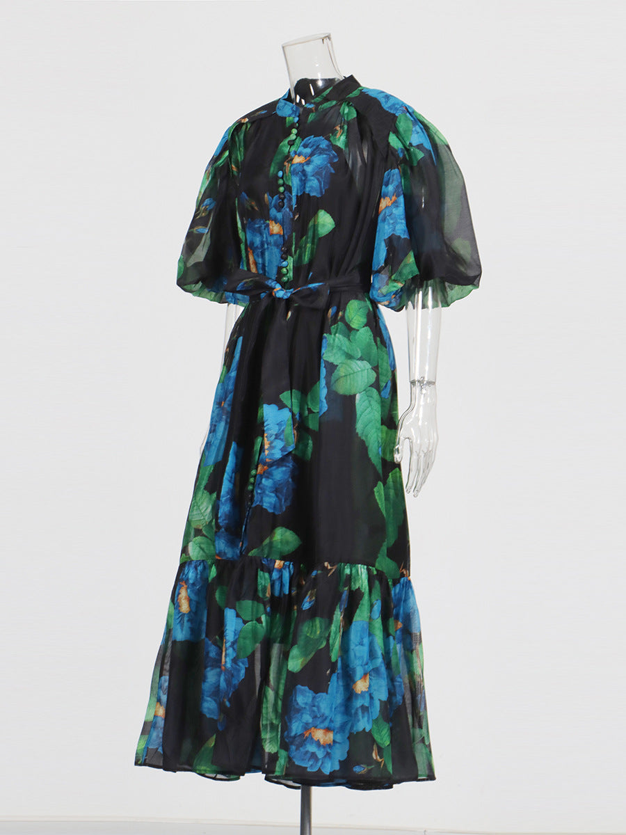 Style Dress 2025 Summer New Fashion Single-Dbutton Bubble Cuffs With Waist Dress