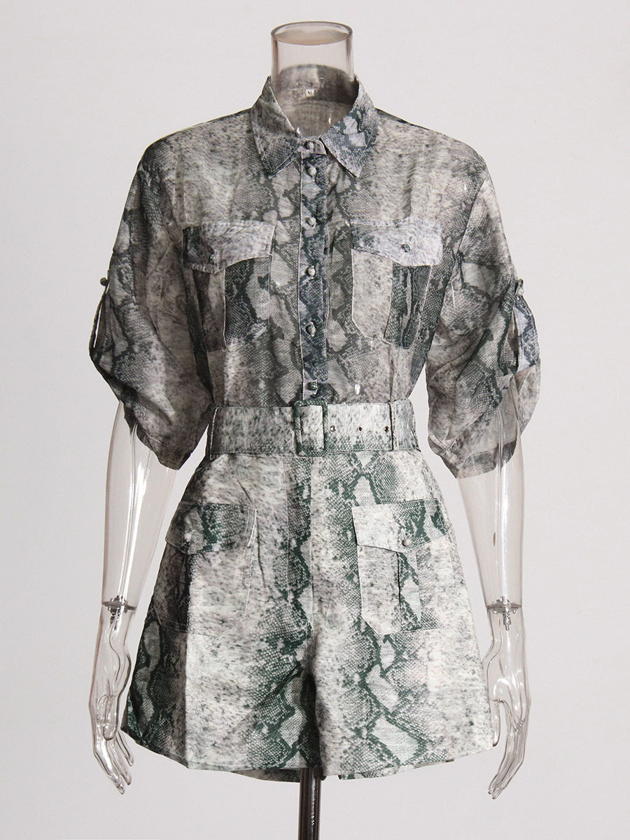 Suit Women 2025 Summer New Mid-Sleeve Pocket Top High Waist High Sense Two-Piece Women