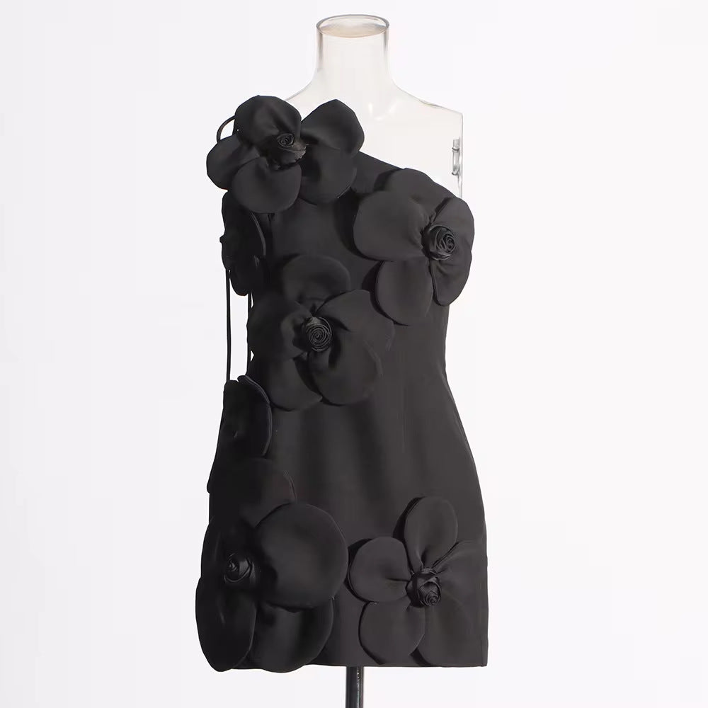 Temperament Temperament Sexy Dress Women's Dress 2025 New Breasts Three-Dimensional Flowers Waist Small Dress