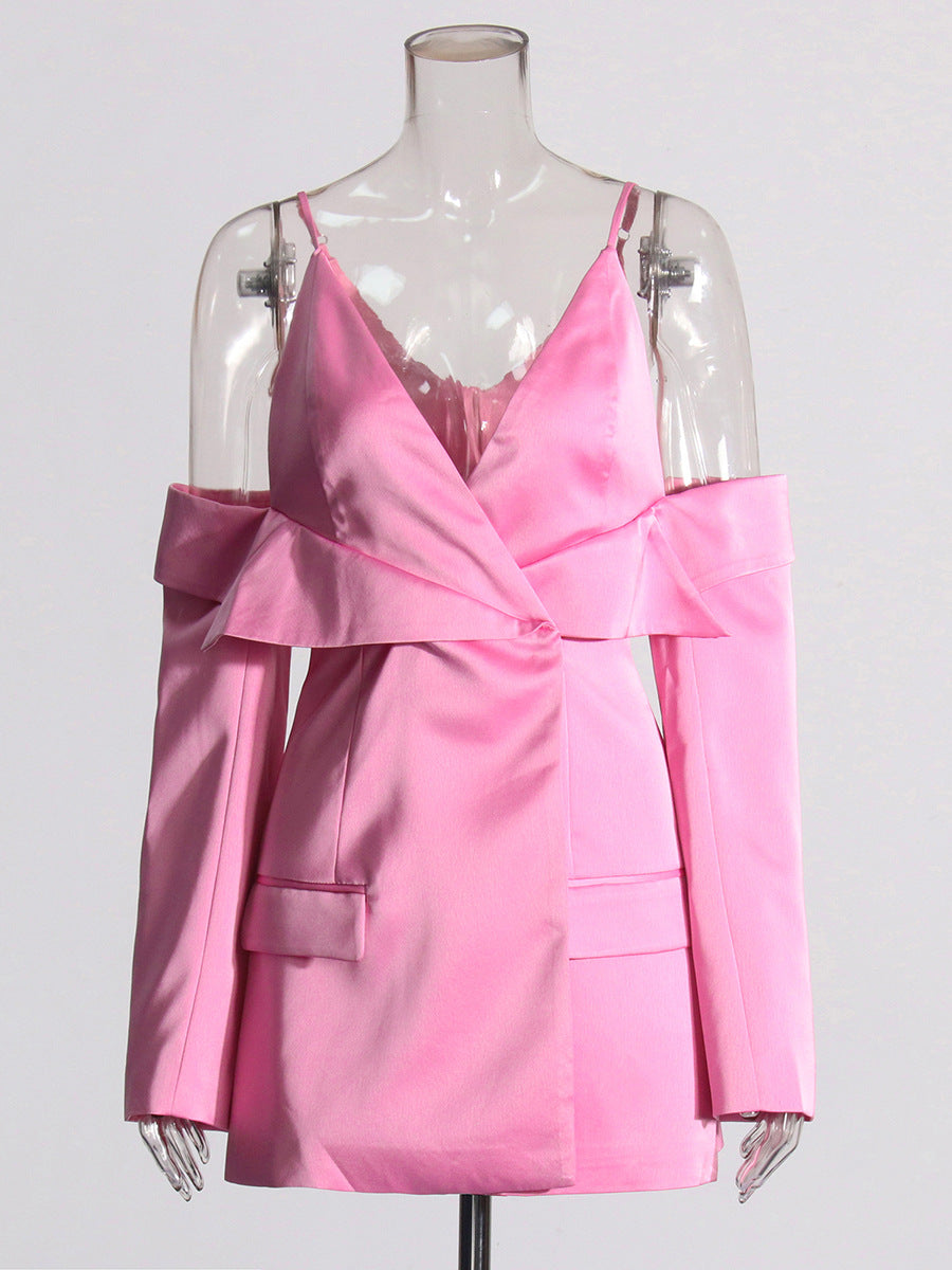 Trend Royal Sister Design Suit 2025 Spring New Shoulder Sling Hollow Design Pink Coat Woman