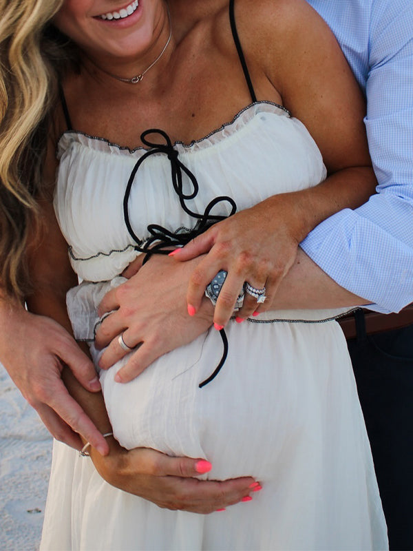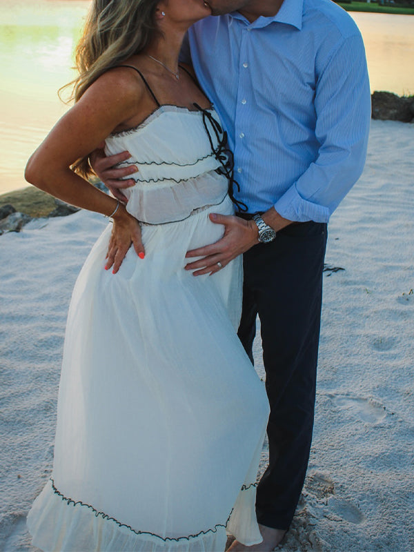 White 2-in-1 Cake Ruffle Tie Cute Elegant Flowy Vacation Baby Shower Photoshoot Maternity Maxi Dress Maternity