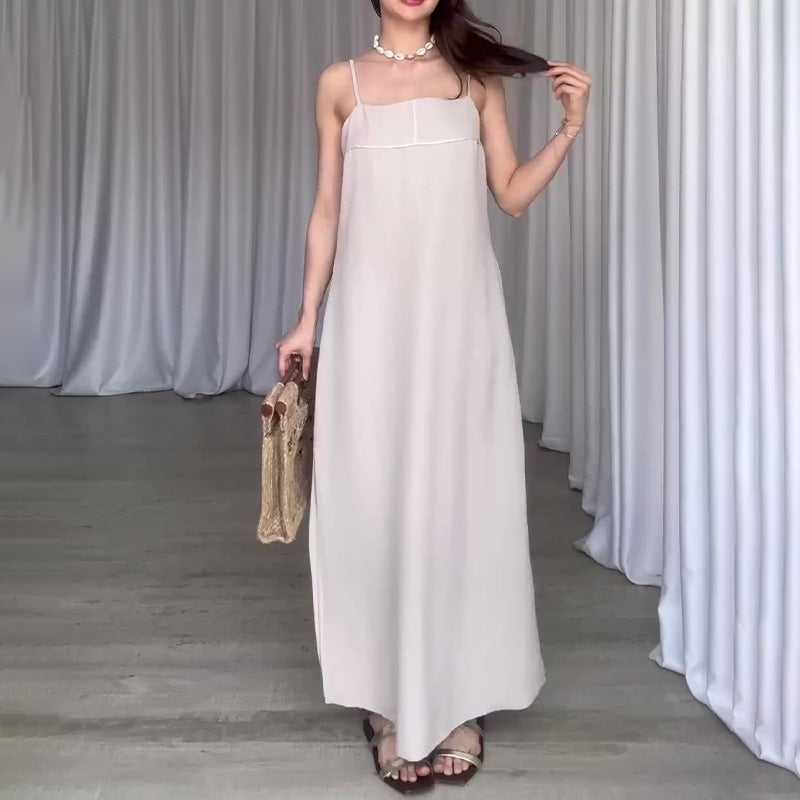 Women's Summer Slings Square Sleeveless Temperament Stylish Simple Straight Fork Skirt