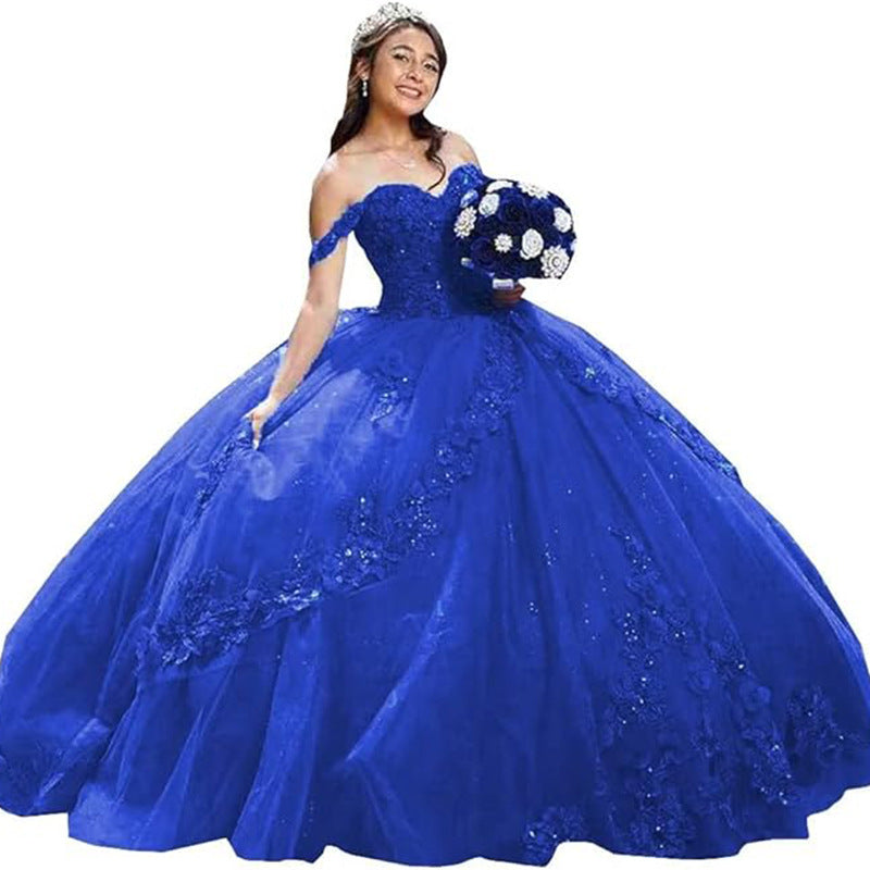 Yarn Vocal Solo Dress 2025 Blue Three-Dimensional Flowers High-End Feel Fluffy Skirt Tug Tail Heavy Industry Performance Clothes Female