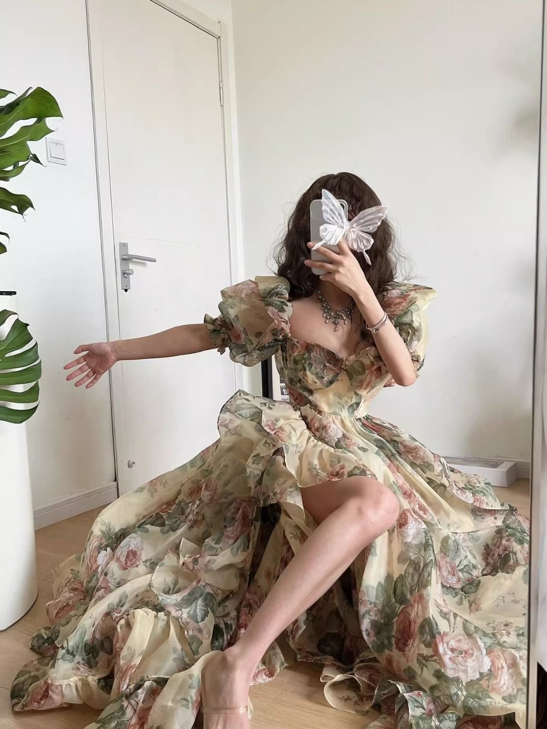 Yellow-Bottomed Colorful Rose Wedding Dress 2025 New Dress Dress Dress Dress HZ0628