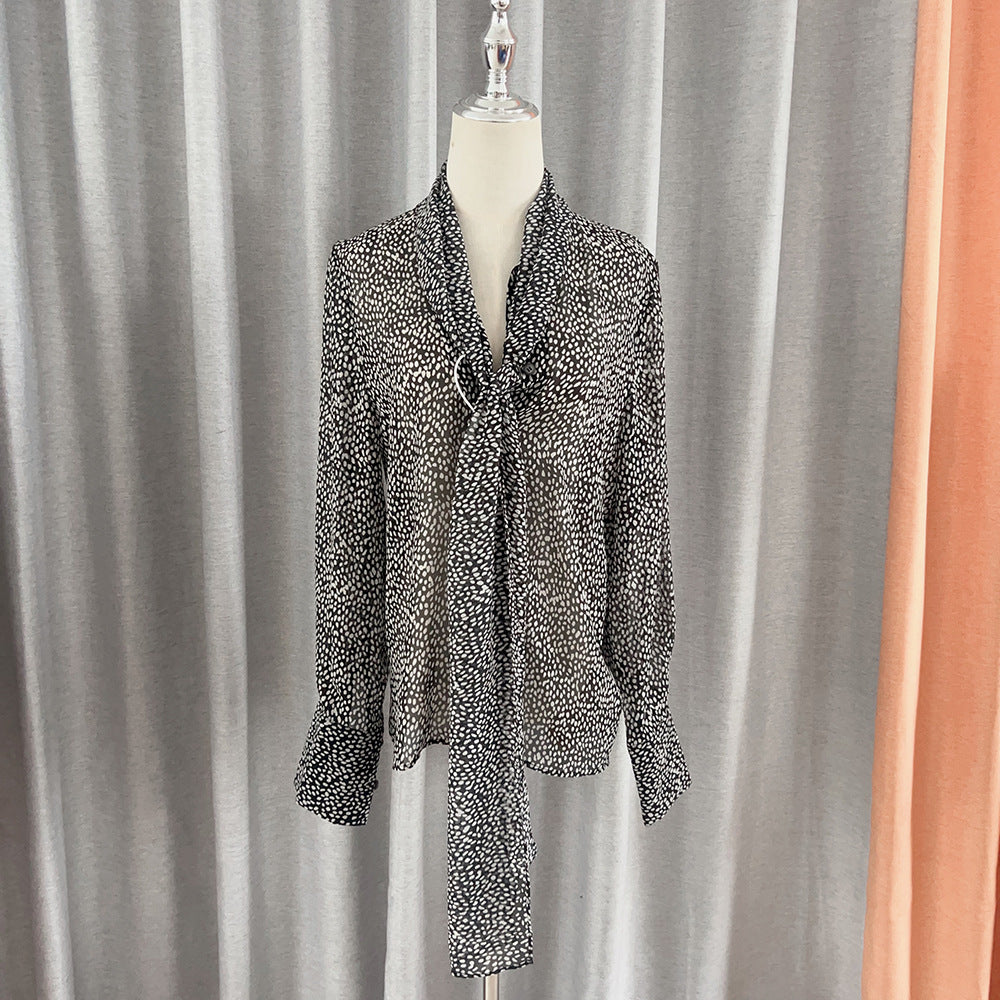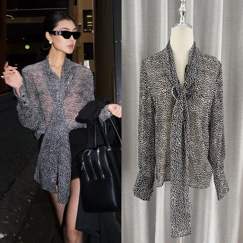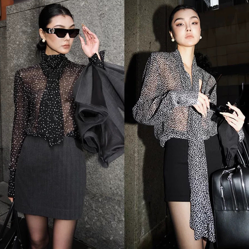Zhao Sanguan With The Same White-Point Transparent Shirt 2024 New Retro Tie Tie Top