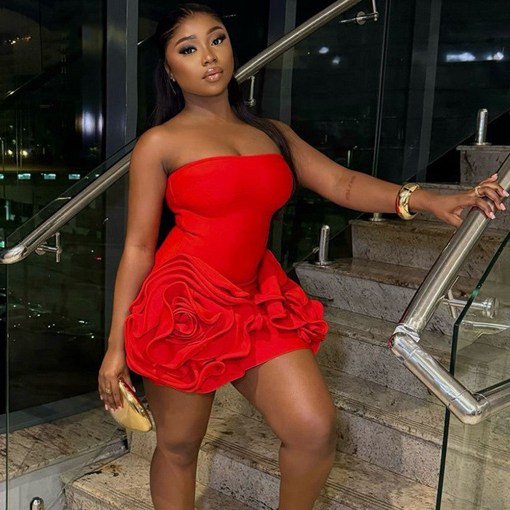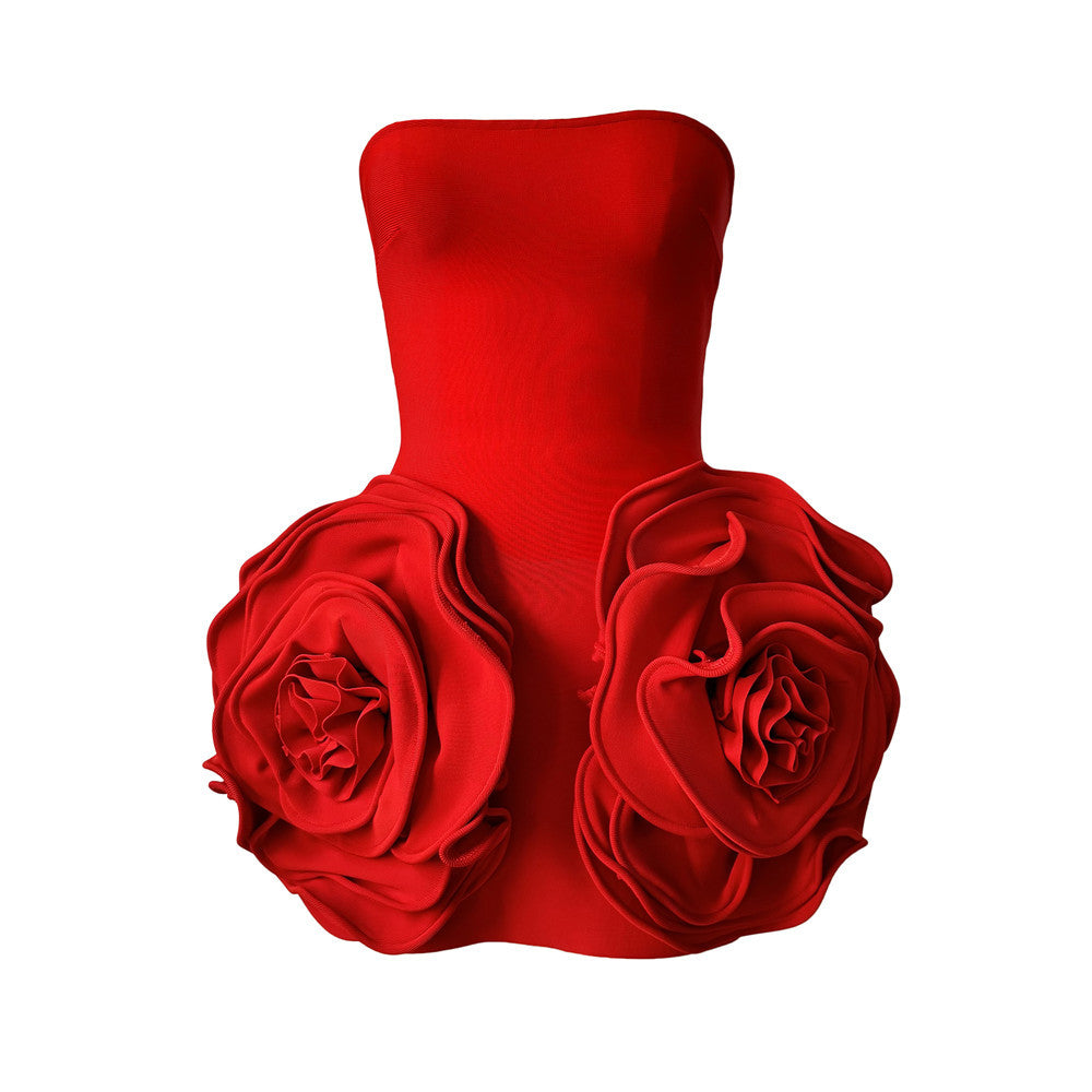 Bra Strap Dress With Stylish Three-Dimensional Big Flower Party Party Dress Dress Dress
