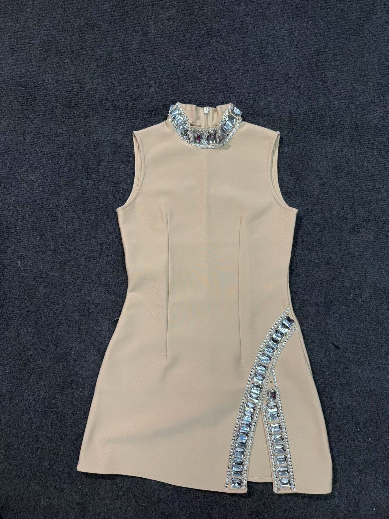 New Summer Sleeveless Hem V Drill High-Neck Sexy Tight-Bstice Ass Dress Famous Dinner Party Bandage Dress