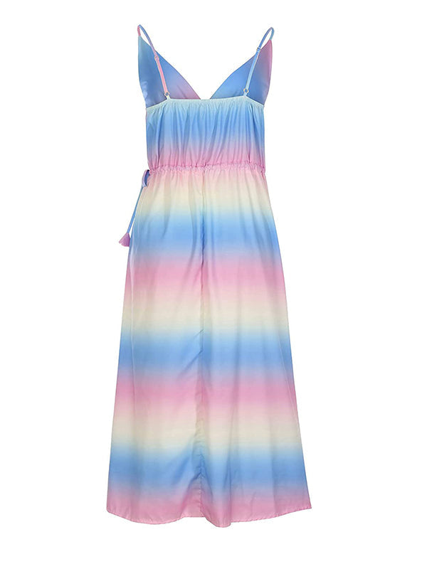 Pink-Blue Ombre V-neck Spaghetti Strap Cami Slit Boho Gender Reveal Party Maternity Maxi Dress Maternity