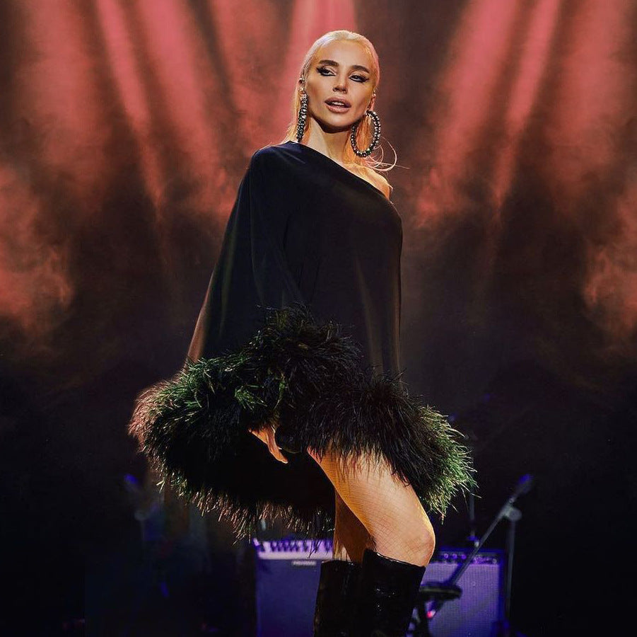 Sexy One-Shoulder Hair Hem Cape Dress Party Short Body-Body-Brow Dress Dress Girl DJPT