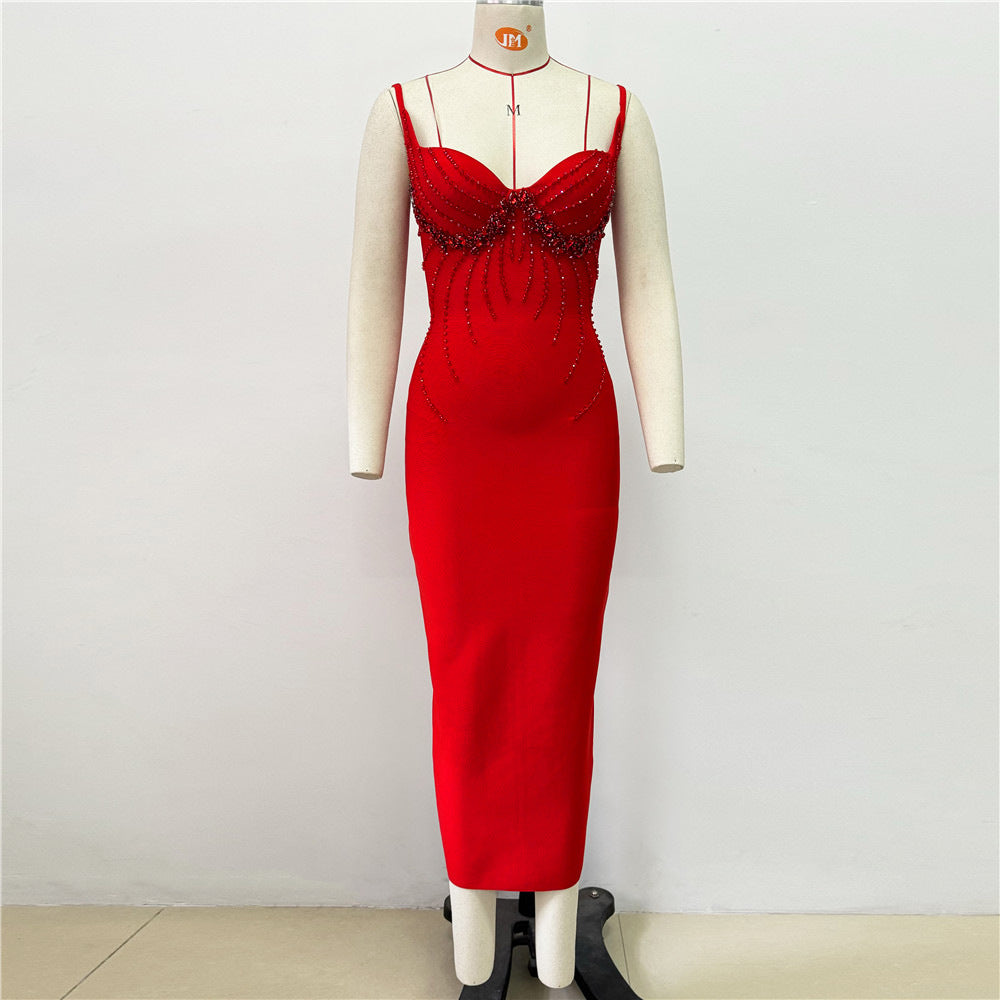 Sexy V-Neck Nail Beaded Diamond Sling Banding Dress Dress For The Party Party