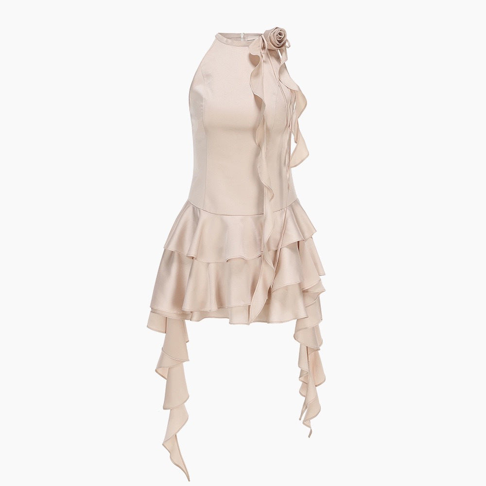 New Sexy Lotus Side Flowers Hanging Neck Skirt Atmosphere Feel Flowing Sleeveless Short Dress