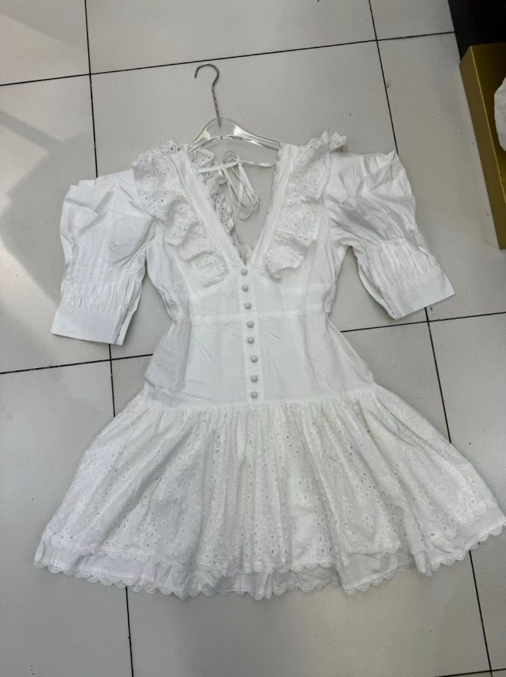 Style Sexy Deep V-Dressed With Lotus Leaf Side Bubble Sleeves Short-Sleeved Blue Dress Dress Dress Short Dress Woman