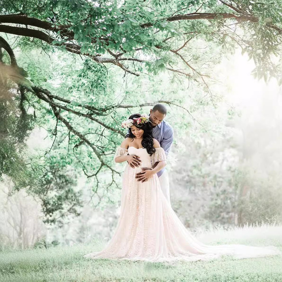 Women's Lace Pregnant Women Tail Short-Sleeved Dress Photography Flying Sleeve Dress 8919 (Special Price) Maternity
