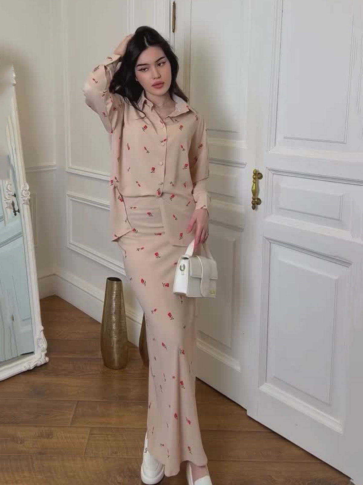 2024 Women's Two Sets Of Breathable Casual Collar Flower Print Dress