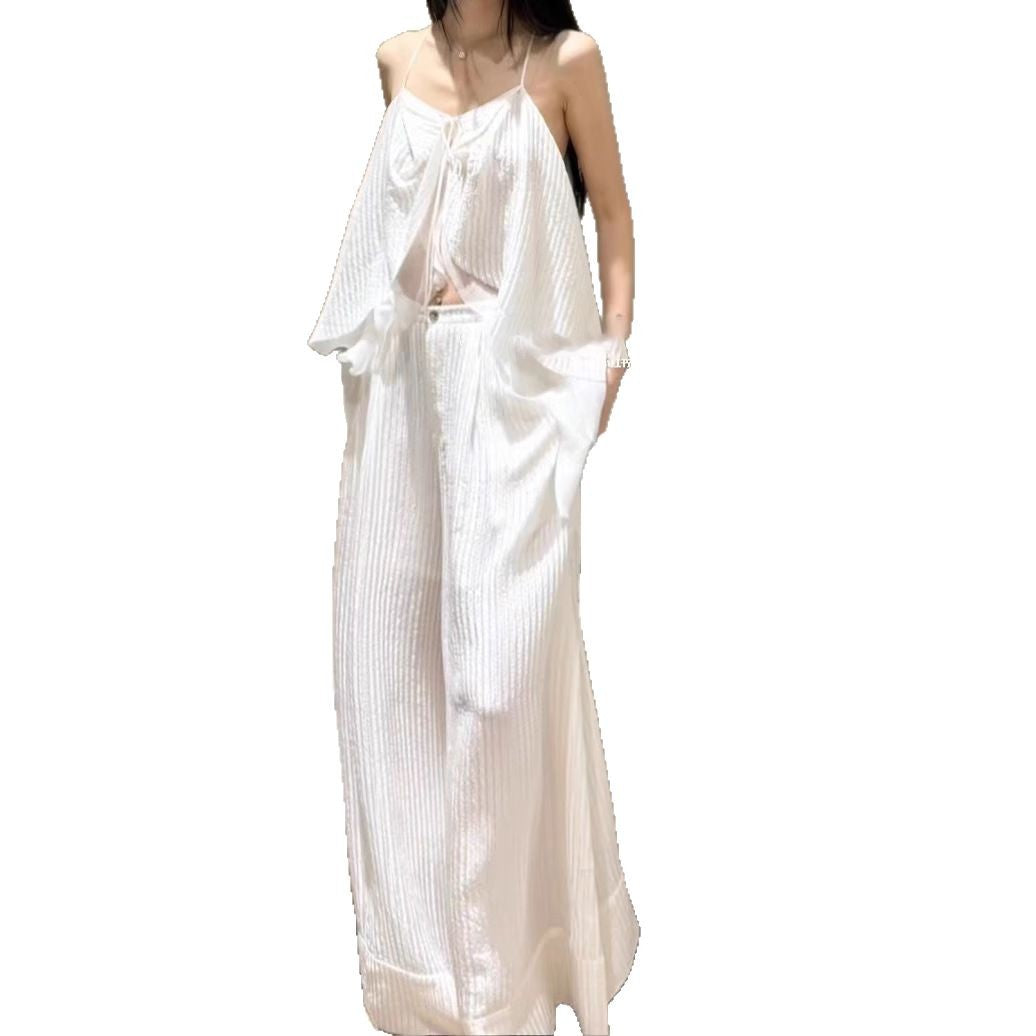 2025 New French Heavy Industry Press Folding Sling Vest Women High Waist Lace Skirt Suit