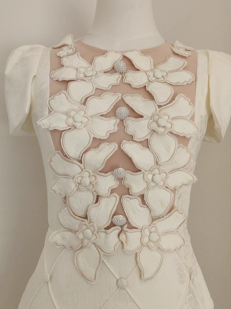 A line Boat Short Sleeves Satin White Party Dress Short Holiday Dresses SD347
